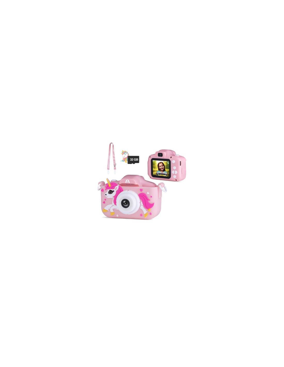 CAMARA DIGITAL ARGOM MAGIC PIX 81 HD 1080P 40MPX 32GB LENTE DUAL MP3 PUERTO USB-C CON FUNDA PROTECTORA PARA NIÑOS ROSADA